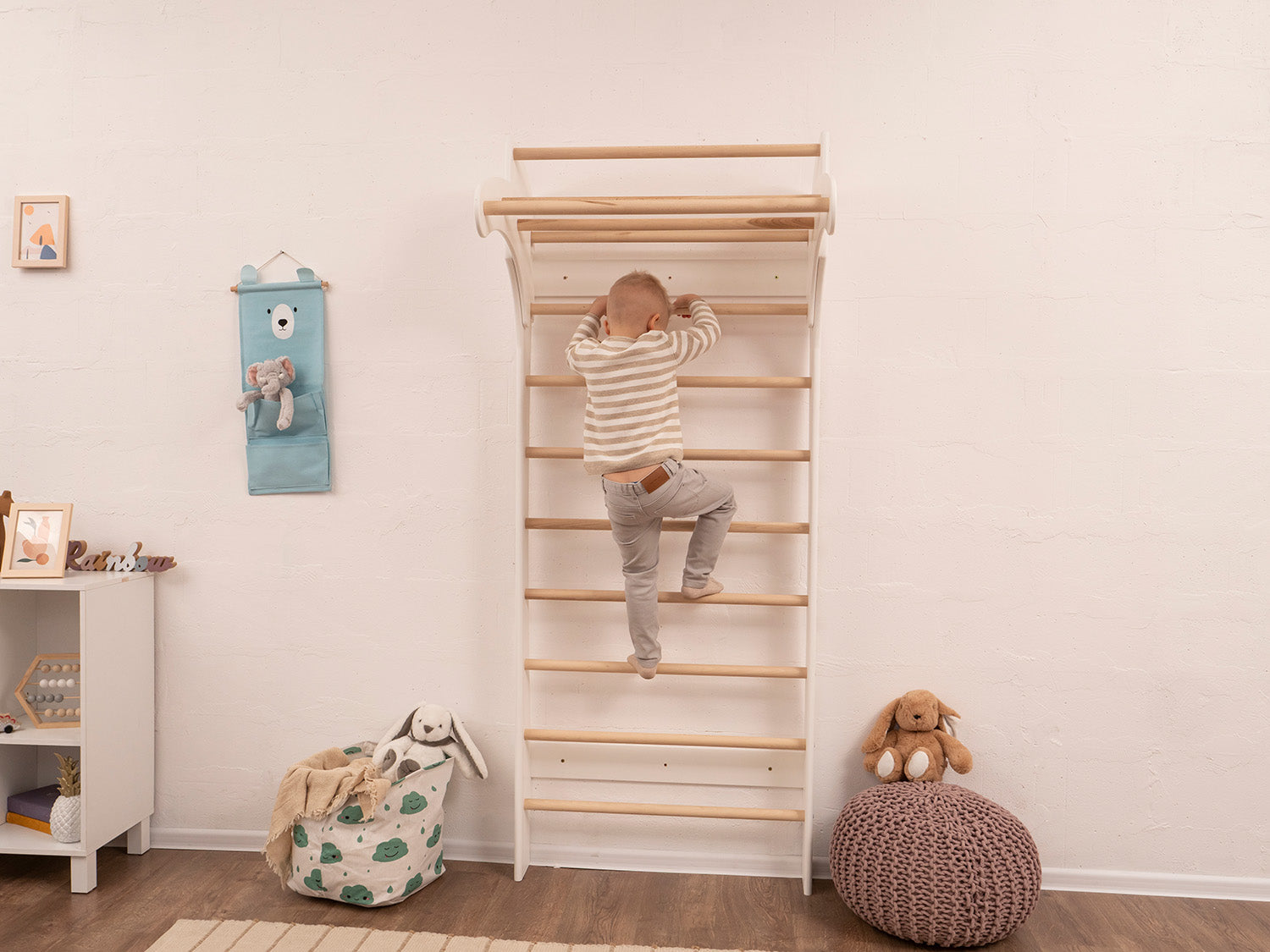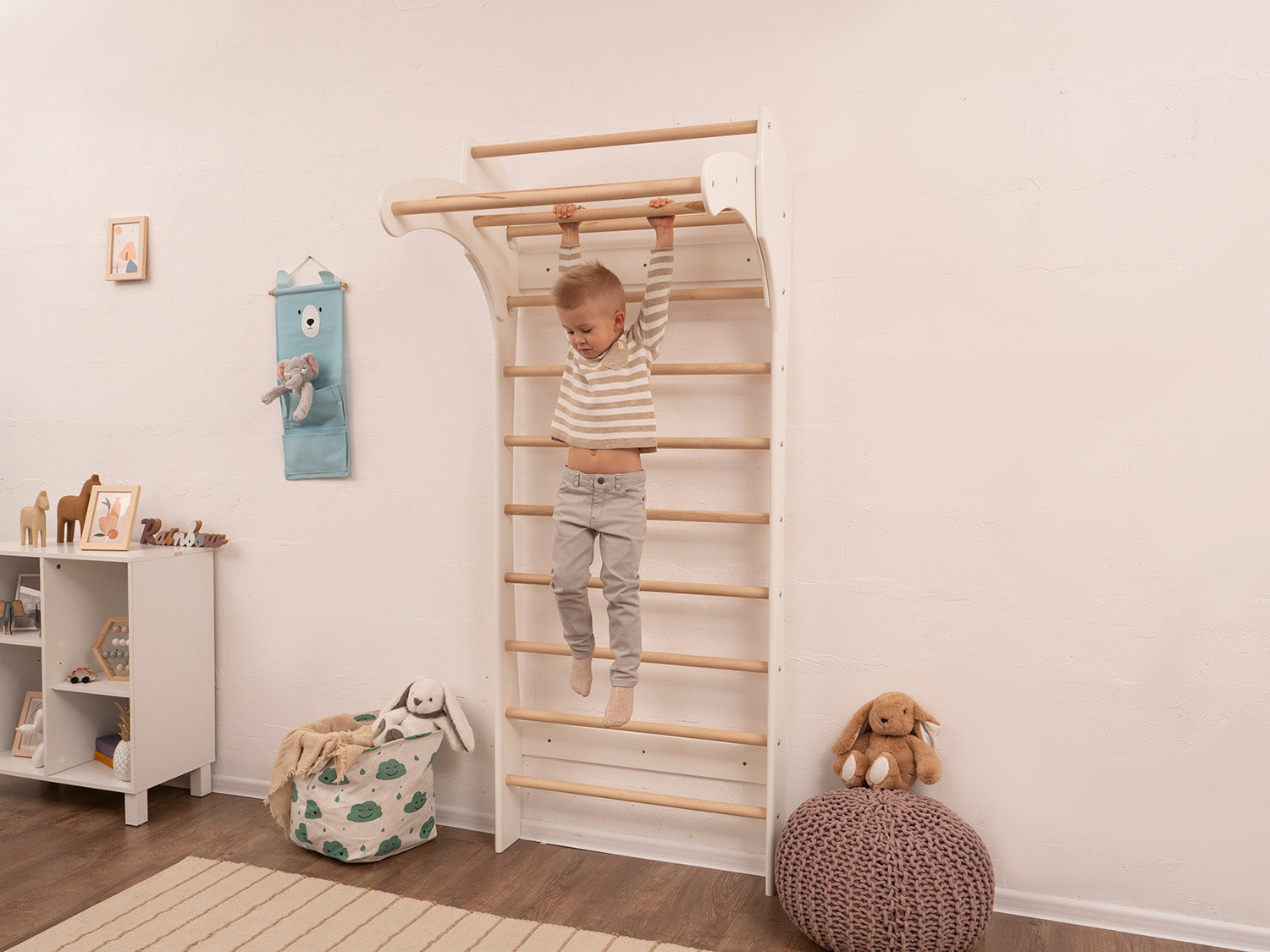 Reguleeritav horisontaalne varb võimaldab redelit kohandada lapse kasvule ja oskustele, muutes selle mugavaks nii väikeste ronijate kui ka teismeliste treeningpartneriks. Lapsed saavad ronida, riputada end, sooritada venitusi ja katsetada erinevaid jõuharjutusi – kõik see turvalises koduses keskkonnas.